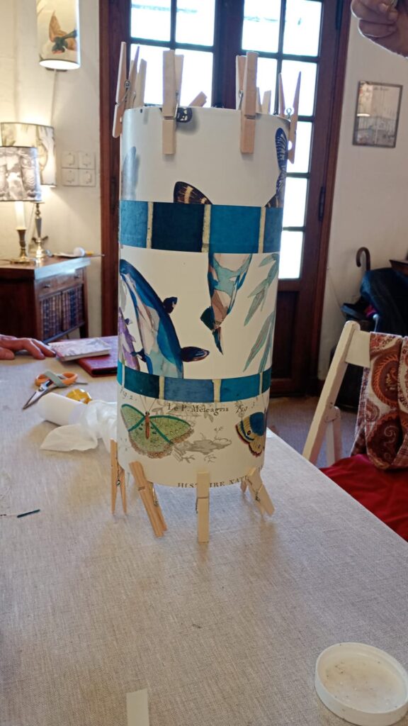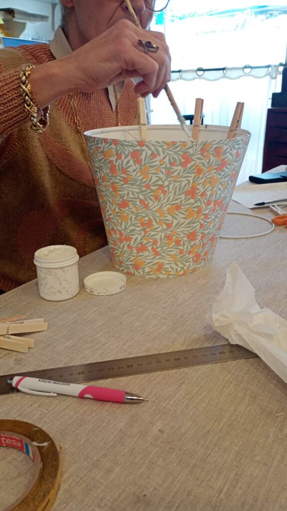 A Cande Saint Martin, chez Gabrielle Plasse, artisan d’art au sein de son atelier « Intérieur Lumières » un petit groupe de 4 adhérents a réalisé plusieurs abat-jours dans la journée, guidée par la professionnelle.